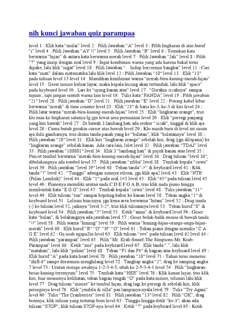 Level 2 g a kata orang ini soal kunci kunci . Cheat lengkap game quiz parampaa 1 dan quiz parampaa 2. Klik this levellevel 104 : Klik this levellevel 104 : Kunci jawaban quiz parampaa 1 dan 2 password lengkap. Karna ga ngerti ngikut aja deh) 3. Level 3 titik dihuruf i!4. Kondisi paritas pada keuangan internasional dan pemrakiraan nilai tukar. Tahan kiri biar gk game overlevel 102 : Lu harus jawab dengan jawaban yang salah 145: Kunci jawaban quiz parampaa 2 level 160. Kunci jawaban quiz parampaa 2level 100 : Kunci jawaban quiz parampaa 2level 100 :